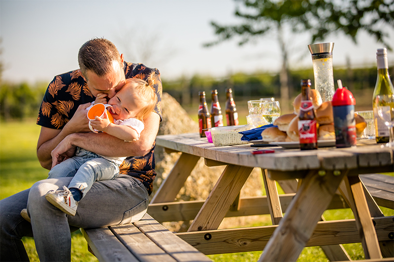 Buiten beschikt u werkelijk over een zee van ruimte. Vanaf het overdekte terras heeft een volledig vrij uitzicht. Enkel de paarden zijn uw overburen. Op de grote speelweide is een vuurstookplaat aanwezig en voor de kinderen is een trampoline en een vogelschommel voorzien. Verder is het boerenbedrijf natuurlijk heel interessant voor de kinderen en het 30ha grote grondgebied is de droom van elk kind